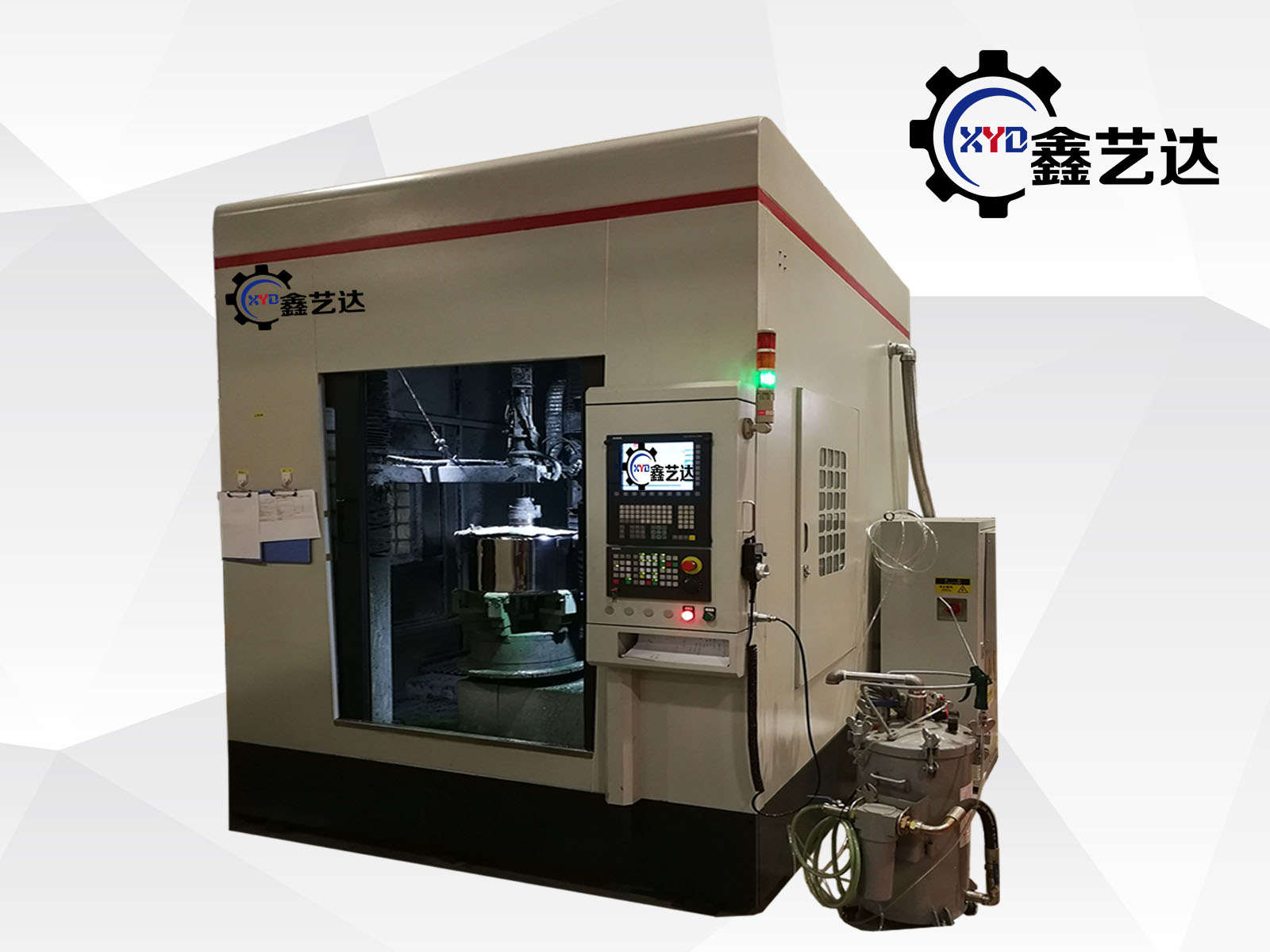 拋光底與蓋&拋光桶身拋光設備整體護罩、配集塵設備,為瑞典獨資公司天津利拉伐定制數(shù)控拋光設備,選用西門子828D數(shù)控系統(tǒng),主軸IP65 防爆伺服電機1臺, 6 臺電機采用非防爆 IP54 伺服電機加防塵罩。