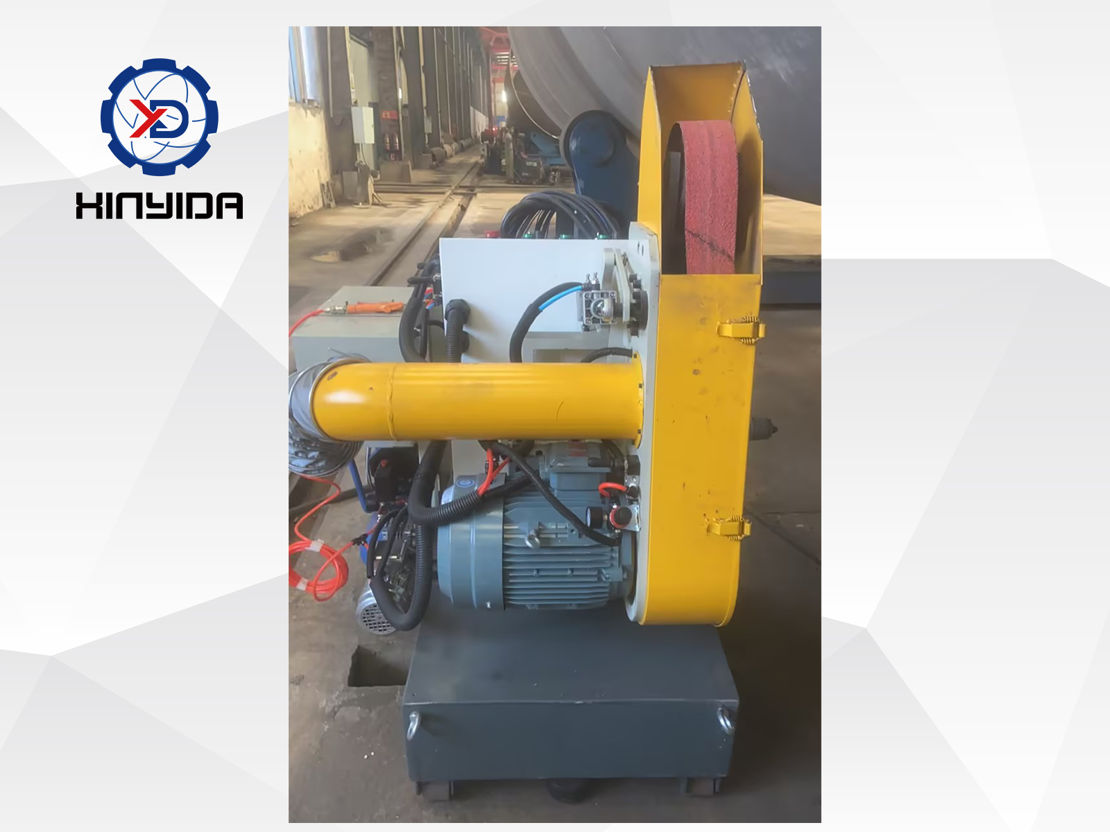 本拋光機(jī)為移動(dòng)式小推車設(shè)計(jì),專用于金屬罐體(如不銹鋼罐、壓力容器等)環(huán)焊縫的打磨拋光作業(yè)。也可用于清理焊前V型焊縫的焊渣。